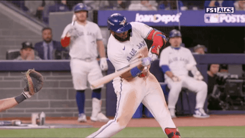 Vladimir Guerrero Jr. after Sunday's Game 6 win. (Vaughn Ridley/Getty Images) |