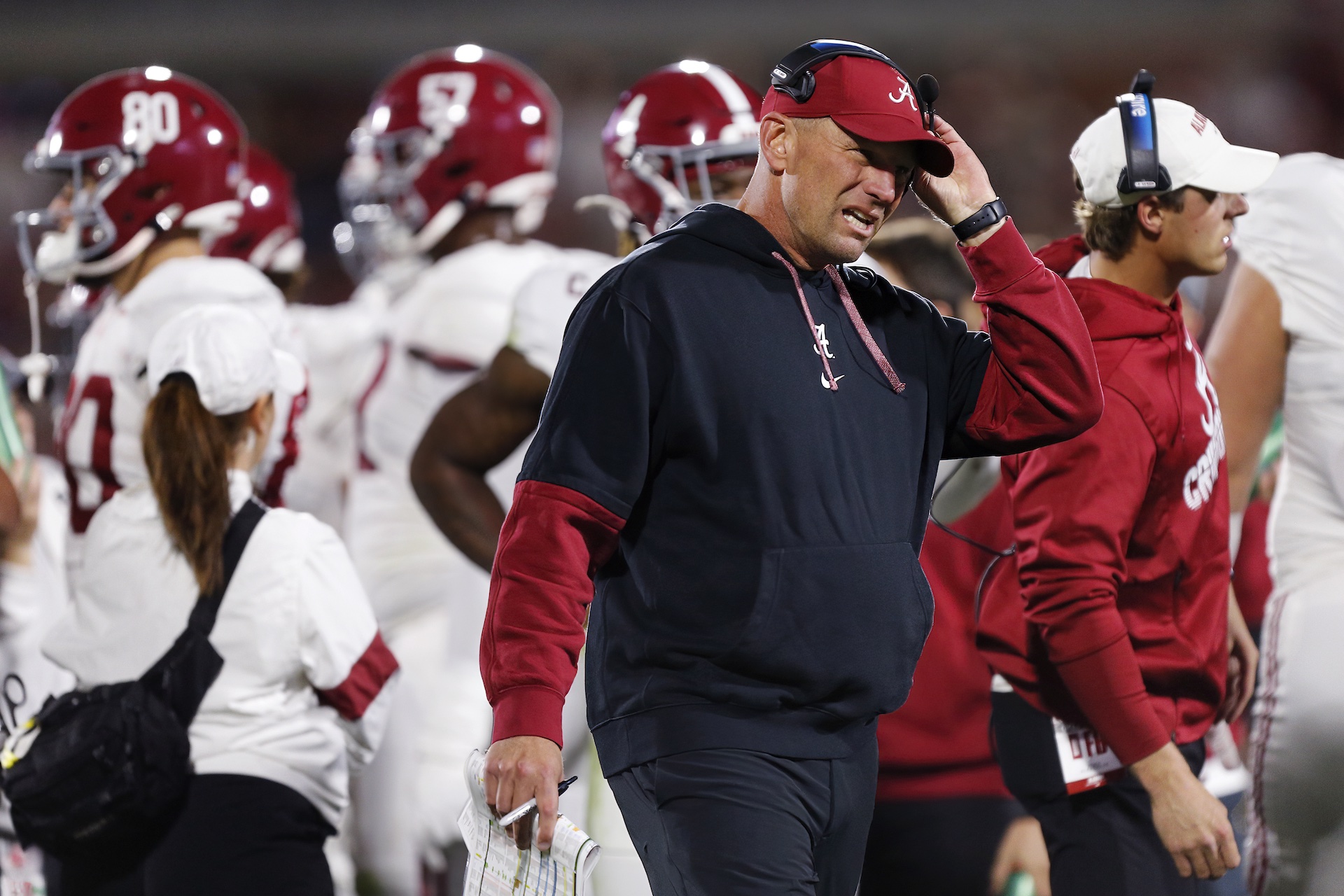 | THE "BLACK HOODIE OF DEATH" | The Tide look like one of the best teams in college football, and their coach is showing more emotion than ever before while rocking the black hoodie. (Jeffrey Vest/Getty Images) | Call it a superstition. Call it silly. Call it what you will. When Alabama head coach Kalen DeBoer wears his signature black hoodie, the Tide are unstoppable. From Yahoo Sports' Ross Dellenger: Deep within the Mal Moore Athletic Complex, perhaps in some locked box or barred closet, the University of Alabama football team's not-so-secret weapon of viral superstition resides. There, somewhere, hidden and kept secret, are seven crisp and clean Nike Dri-FIT black hoodies. Better known to the college football world as coach Kalen DeBoer's black hoodie of death. "They're in safe keeping where only I know about them," says Kyle Smith. Smith holds an important role within the Alabama football program. He's the director of equipment, a thankless and often overshadowed job but one of great importance. In this job, Smith's most visible responsibility is clothing the team's head football coach on gameday. That means acting as the caretaker of what's become one of this season's quirky oddities: DeBoer's black hoodie. As coach at Alabama, he's 16-0 in regular season games while wearing the outfit — the short or the long-sleeve version. This bizarre statline is no longer just some fan-driven internet sensation. Bama players are well aware. So is the coaching staff, administrators and DeBoer's own children. From his office this Monday, DeBoer cracks a smile. He's getting a kick out of all the hubbub. "It got brought up this year with our players. They were like, 'Coach, you got to wear it, man,'" DeBoer says laughing. | DeBoer wore a two-toned hoodie during last year's loss to Oklahoma. (Brian Bahr/Getty Images) | Things are good here right now. People are smiling, laughing and enjoying themselves — a product of their beloved Crimson Tide, now ranked fourth in the country, having won eight straight games. Alabama meets No. 11 Oklahoma here on Saturday with a chance to likely secure a playoff berth and remain in pole position to play in the SEC championship game. It also provides an opportunity for DeBoer's team to avenge last year's costly and ugly 24-3 loss in Norman — a playoff hope-dashing debacle that sticks with the coach nearly one calendar year later. "It is probably one of the things that baffled me the most about last season," he says. "It's how it happened. It's how it felt. You're not always going to be at your best, but we just didn't bring it that night." For one, he wasn't wearing that traditional black hoodie. On that night, for whatever reason, he chose to wear a two-toned hoodie: black but with red sleeves. It was one of the last times he veered away from his traditional gameday attire. Will the 2024 Nike version of the black hoodie make its ninth straight appearance on the Alabama sideline this weekend? DeBoer smiles. Of course it will. "At some point," he says, smiling, "I'll have to change to the newer version." Read the full story. | |
