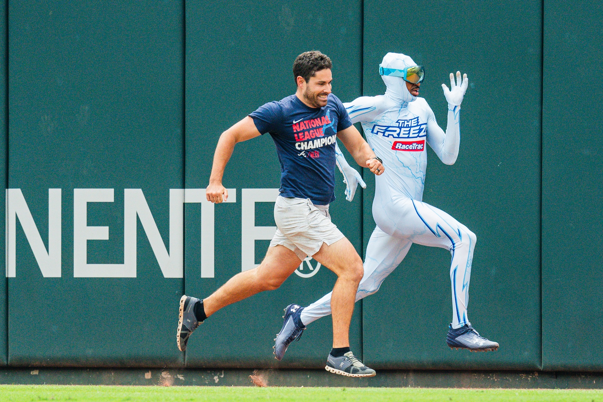 | The Freeze races a fan during a game in 2023. (Kevin D. Liles/Atlanta Braves/Getty Images) | |